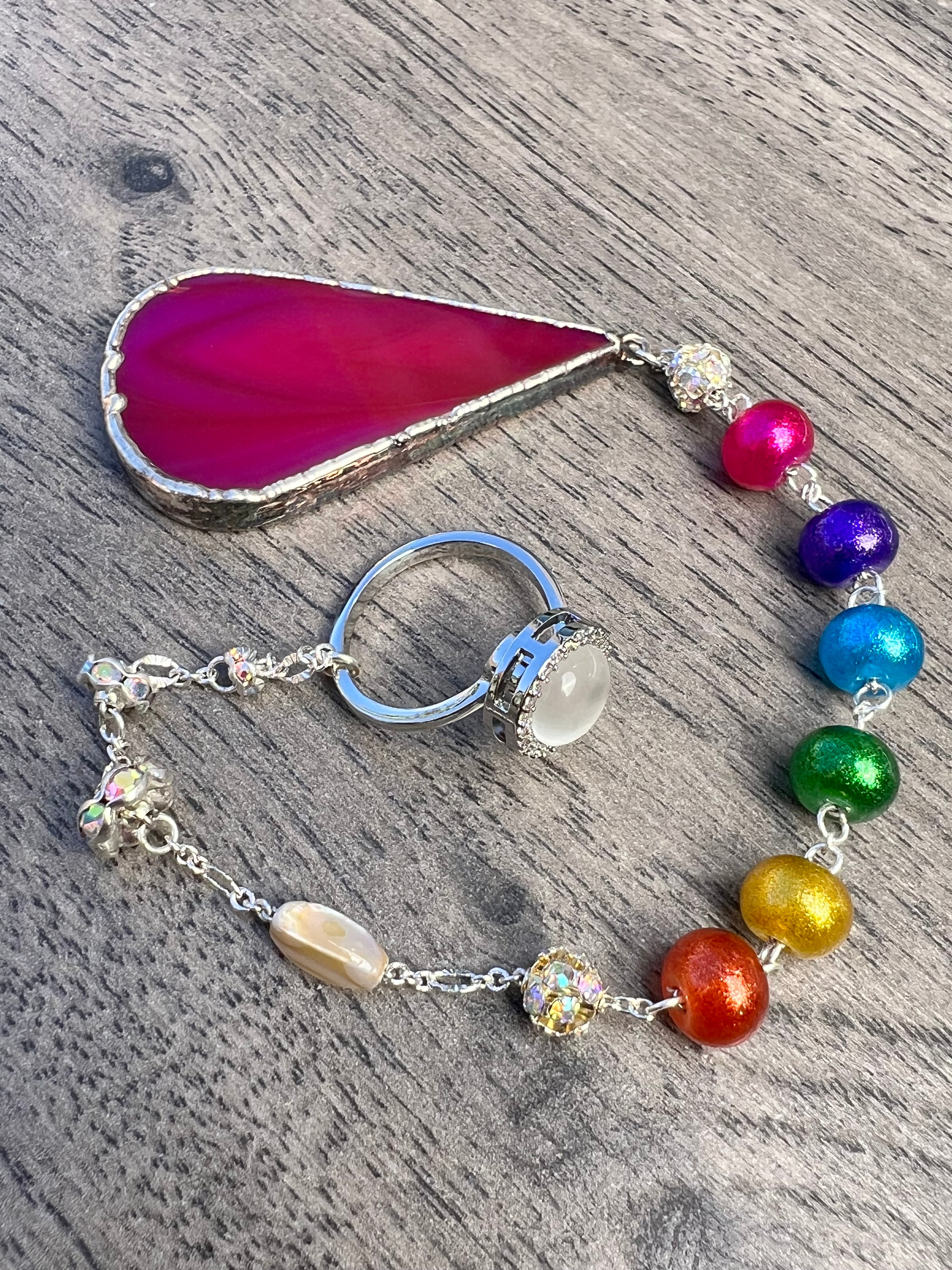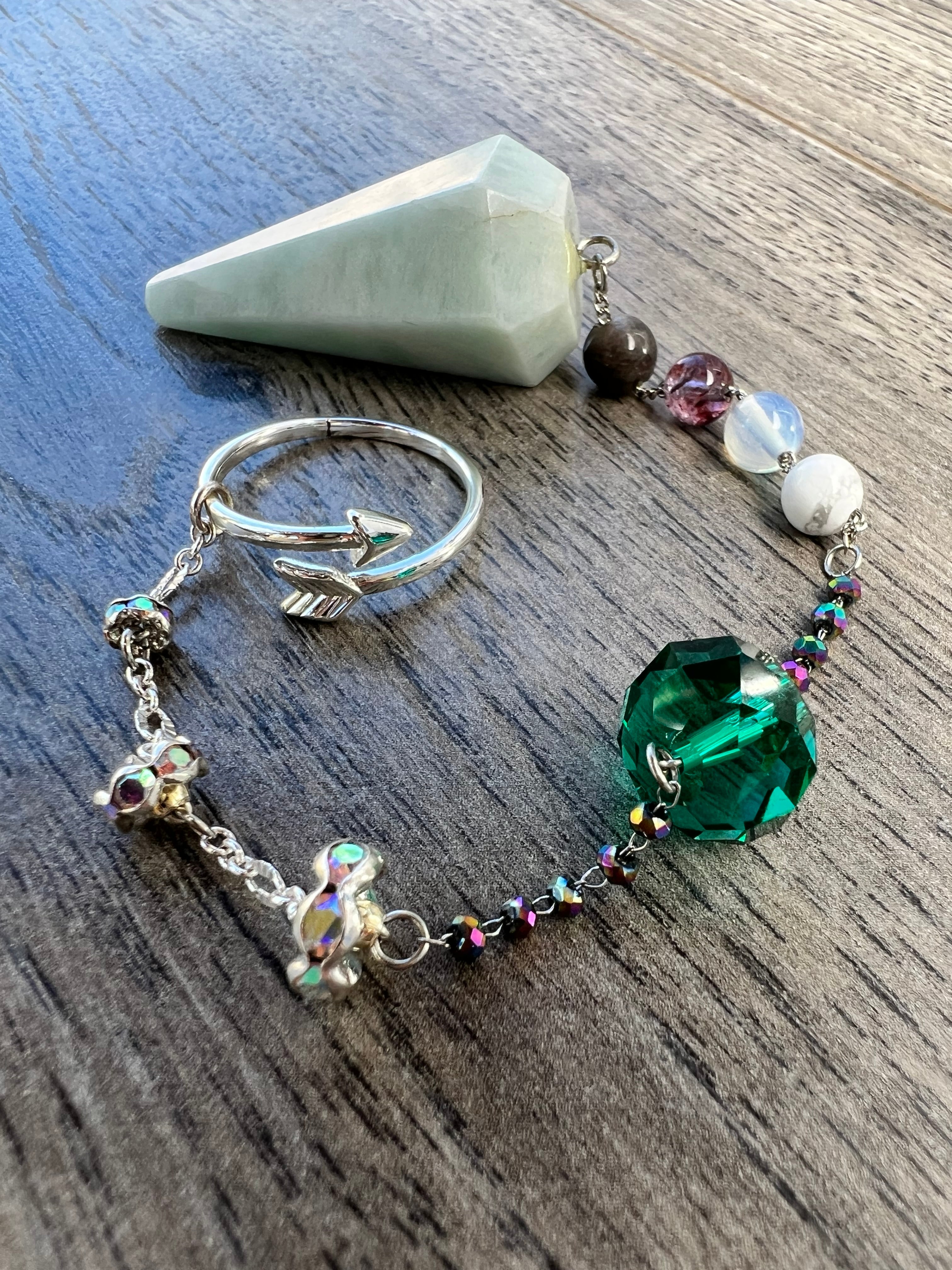 Behold the Pendulum Gallery: A visual archive of Pearl’s Pendulum creations. Some are one of a kind relics, some are sacred customs commissioned through the Dharmic Pendulum Portal, while others may be recreatable designs. Many of the pieces below now live with their chosen soul companions and remain here to inspire your own. If you see design elements you like, you can save/download the photo(s) and upload it into the Dharmic Pendulum Portal order form for your own custom pendulum.